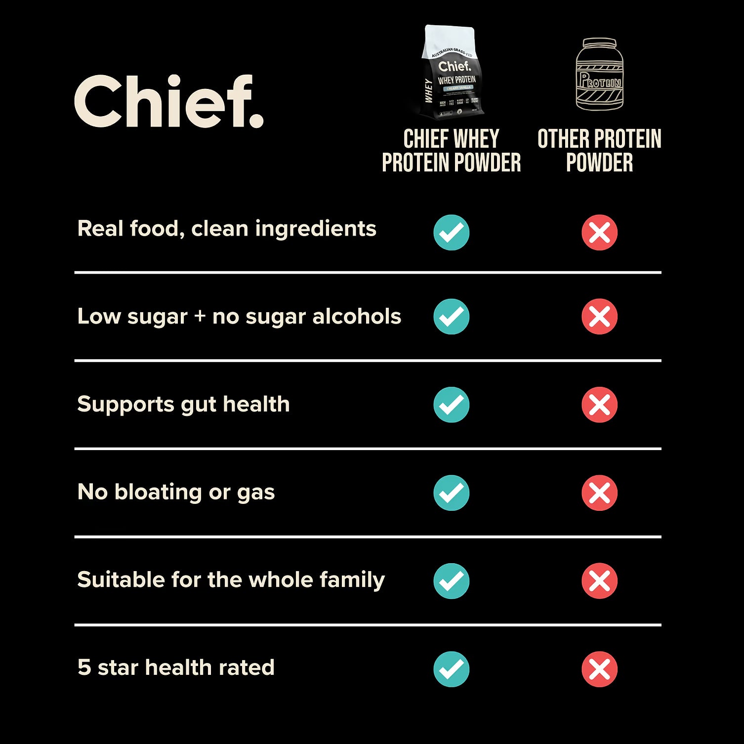 - A premium whey protein concentrate (WPC) sourced from Australian grass-fed dairy cows.