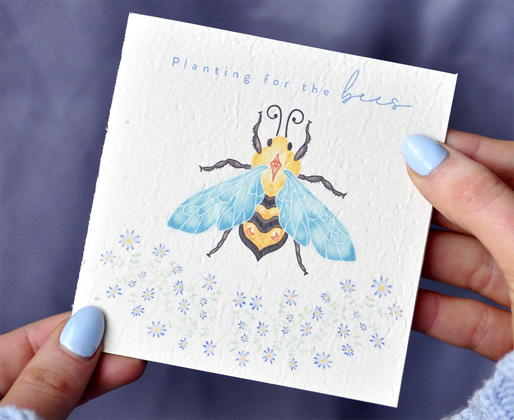 Make a Bee's day with this quirky design, inspired by the humble bumble bee! Each card is filled with native flower seeds to grow Swan River Daisies. 100% recycled, 100% plantable. Comes with 1 envelope made out of 100% recycled paper.
