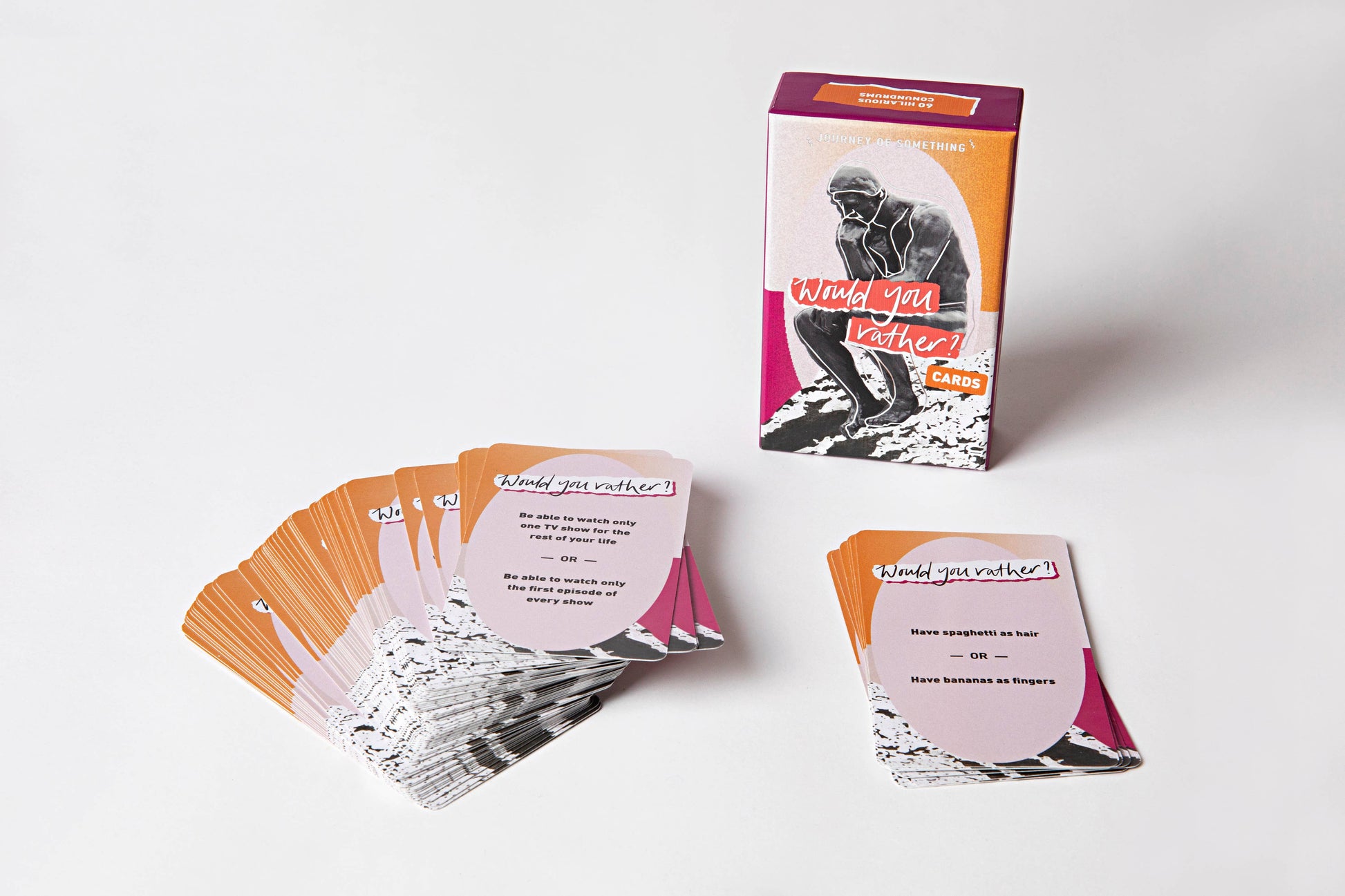 60 funny, thought provoking and whacky Would You Rather Cards.