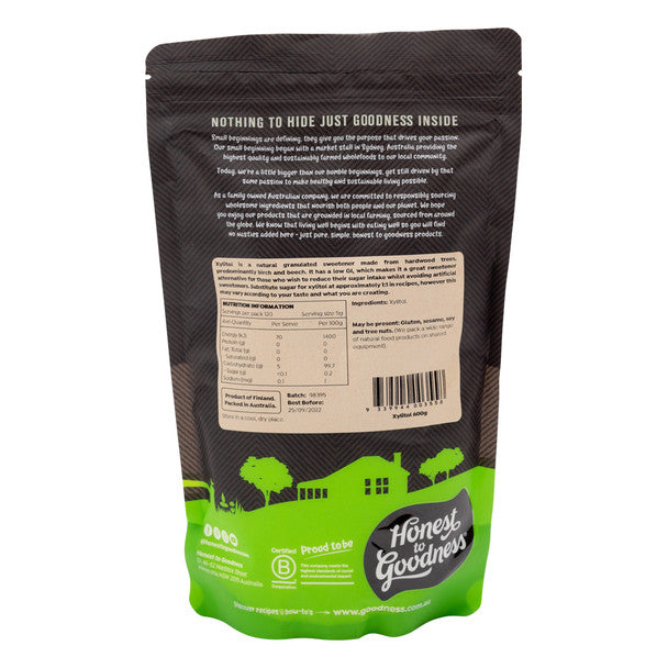 Xylitol contains 40% less calories than cane sugar, is low GI, non GMO and is 100% natural.