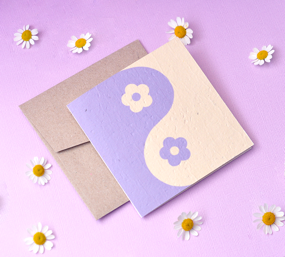 Yin Yang is the perfect all occasion plantable greeting card! Its a gift that keeps on growing! Make memories with your loved ones with our plantable seed cards that grow native Swan River Daisies. 100% recycled, 100% plantable.
