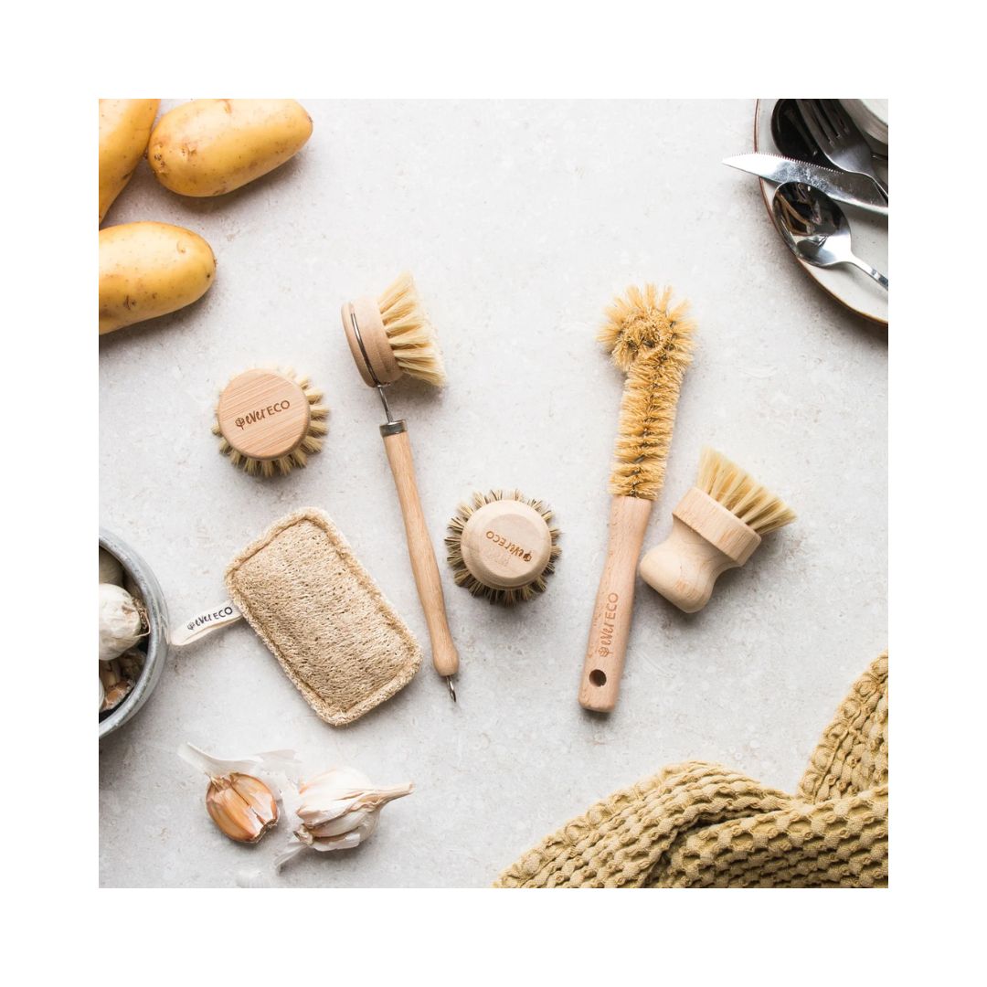 - Plant power! Our cleaning range is made from plants to provide a sustainable alternative to plastic dish brushes and synthetic sponges, which utilise chemicals in the production process and end up in landfill at end of life